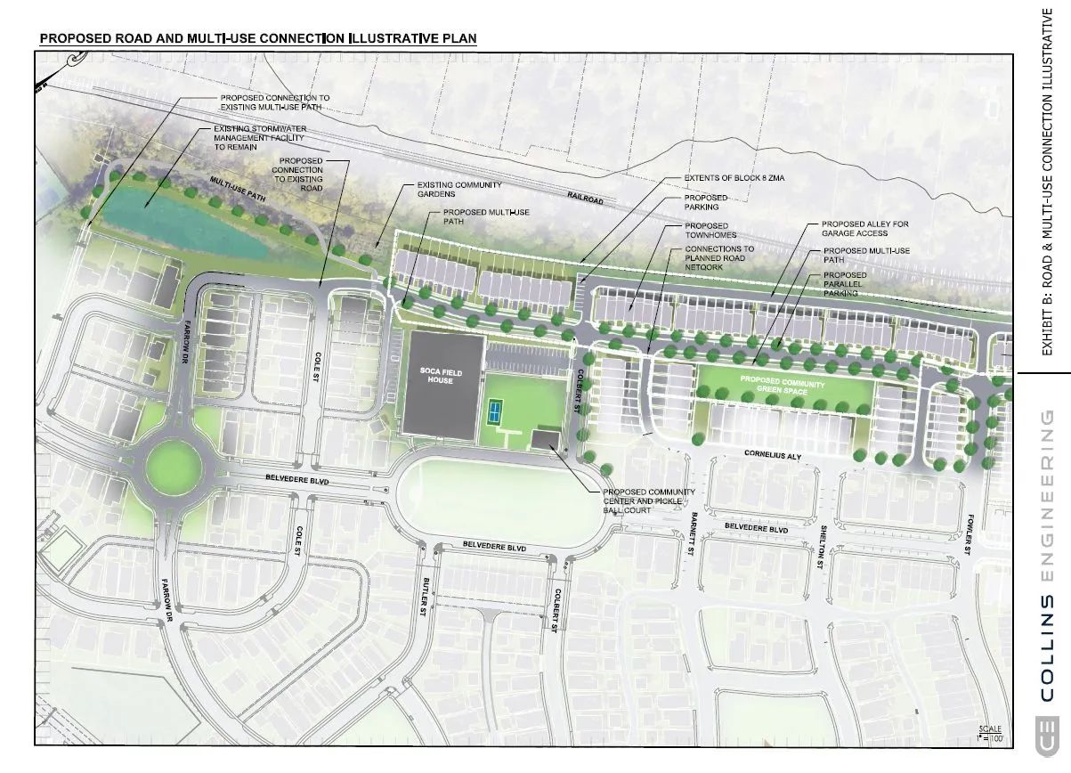 “The original neighborhood model was approved for 775 units,” said Rebecca Ragsdale, a principal planner with Albemarle County. But Greenwood Homes wants to remove a condition from the original zoning reserving a parcel of land along the railroad tracks for a once-planned, now-discarded extension of the John Warner Parkway. Ragsdale said the developer seeks to build 128 townhomes in that space for a total of 903 units.