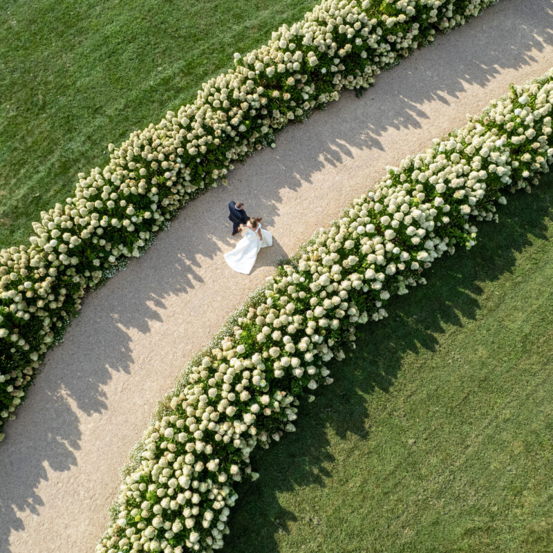 “I embroider a small piece of silk or satin with the bride’s monogram and date in blue thread,” she says. “The label can be sewn into the wedding gown as a ‘something blue’ and removed later as a keepsake or left in as a reminder if the dress is passed down in the family.”