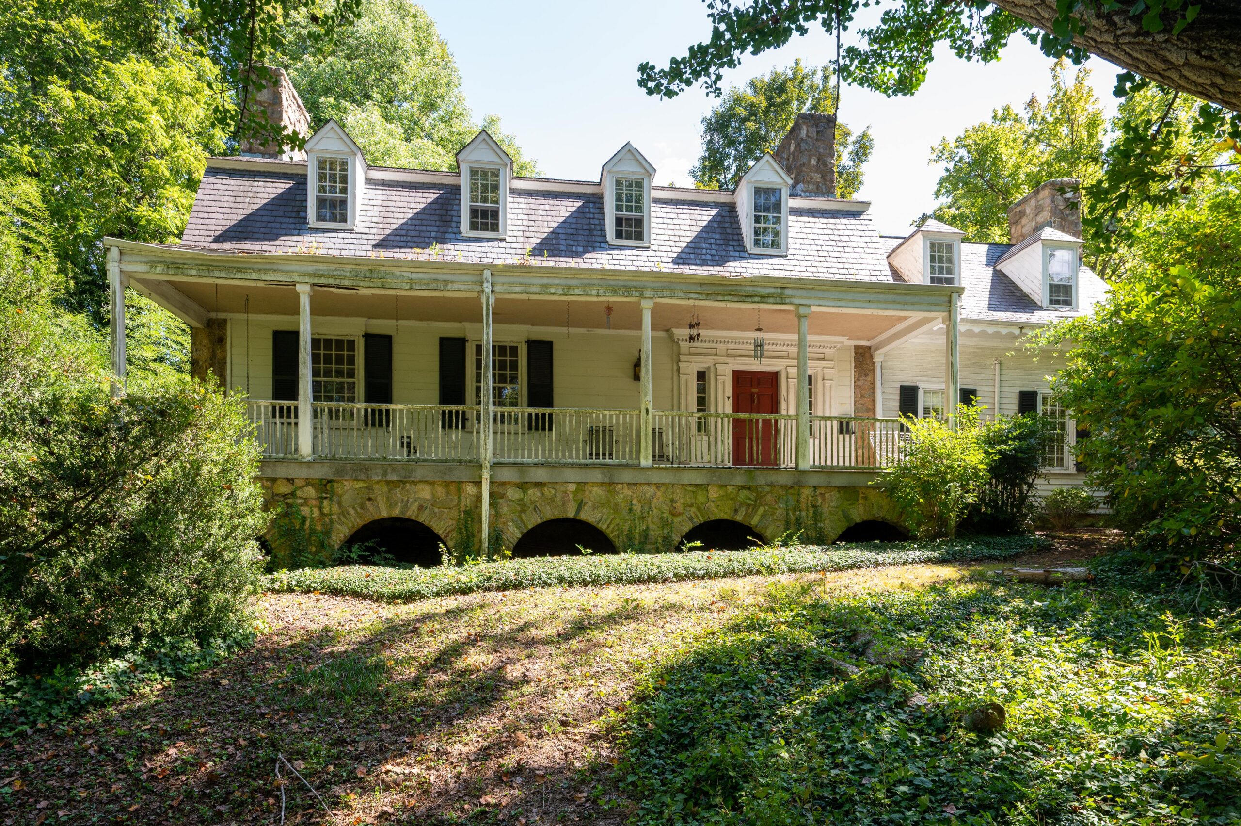 The wood-frame and stone house, built in the Dutch Colonial Revival style, was designed by noted local architect Milton L. Grigg. A Virginia native, Grigg attended UVA but left to work on the restoration of Colonial Williamsburg. In the 1930s, he set up an office in Charlottesville, where he worked for more than four decades. Among his projects were historic sites including Monticello and Michie Tavern, public buildings like Emmanuel Church in Greenwood, and several residences in the UVA area.