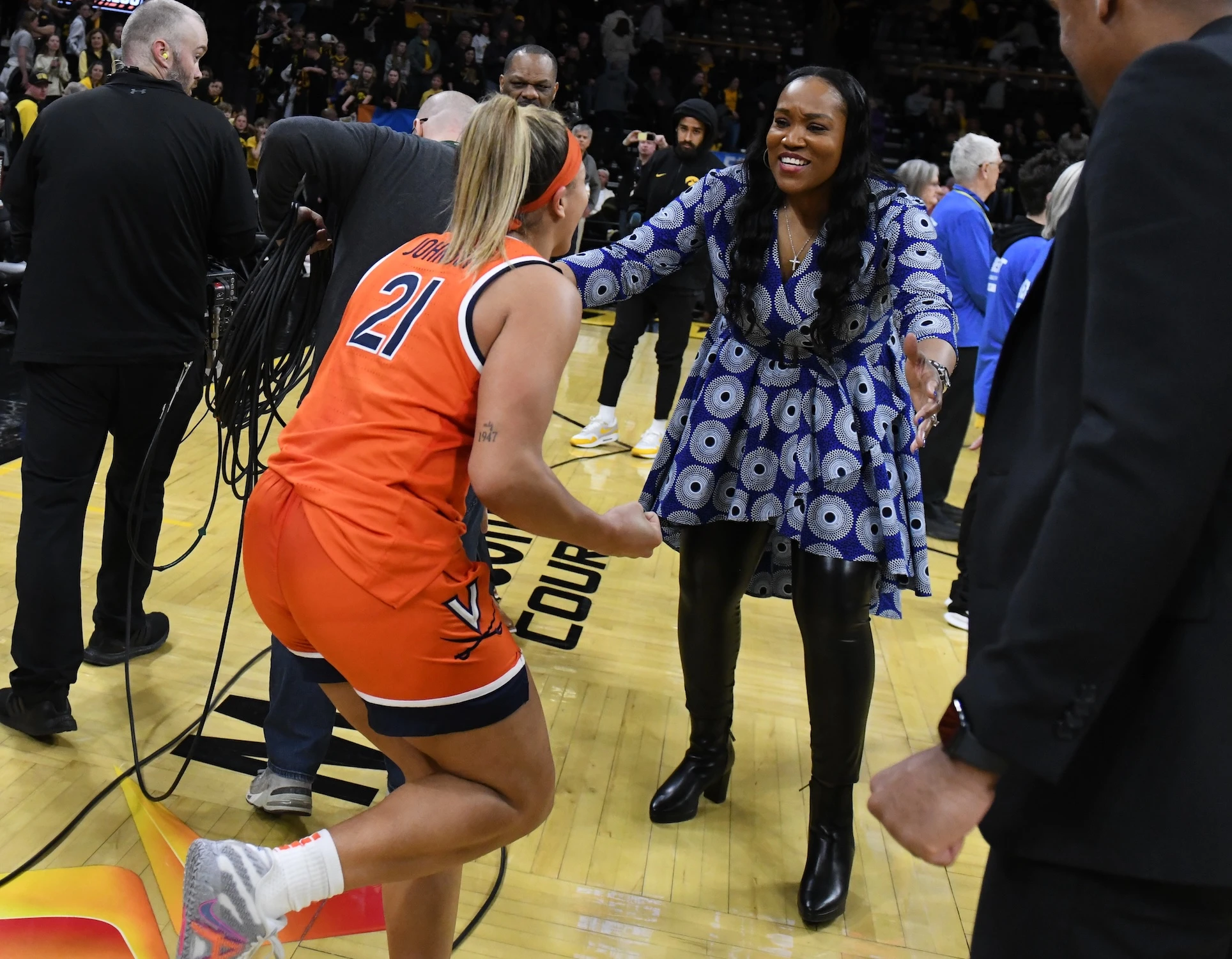 The UVA-Iowa game was an all-out battle, with the two teams trading the lead several times. Charlottesville native Kymora Johnson, who pl ayed all 50 minutes, scored 28 points for the second game in a row, while Paris Clark contributed 20 points, plus seven rebounds and four assists.